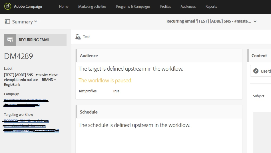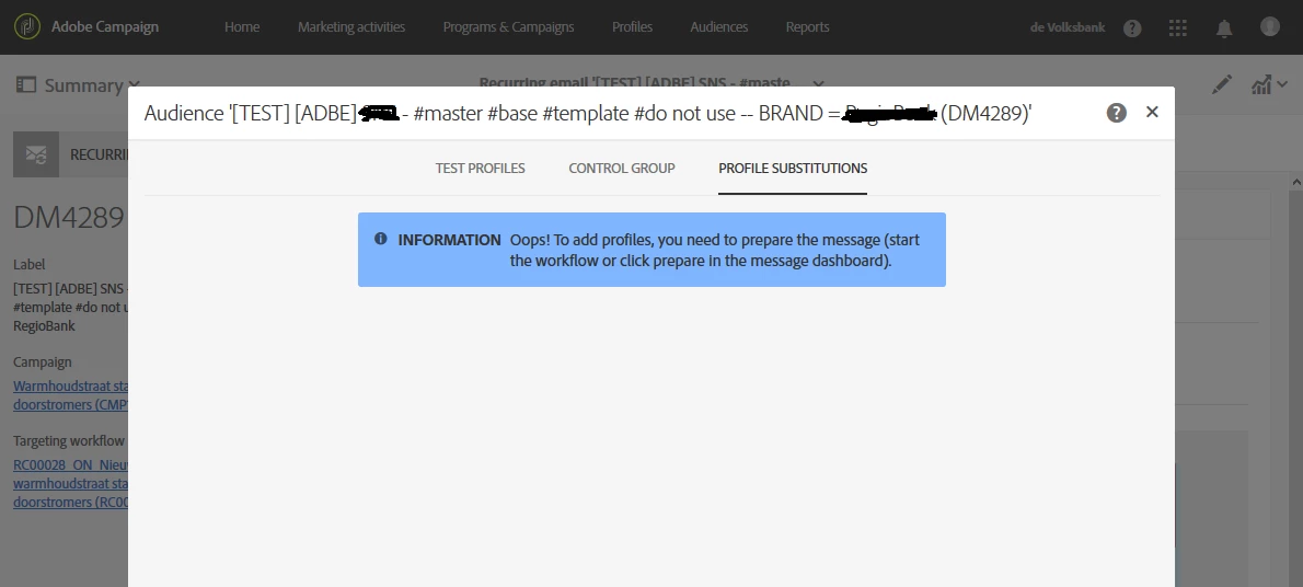 The problem in a recurring email is that a email message will be sent right away, although the profil substitution option is displayed.