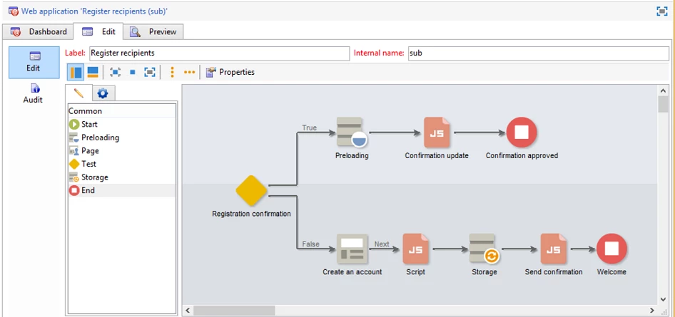 <condition expr={'@id ='+ ctx.recipient.@id}/>