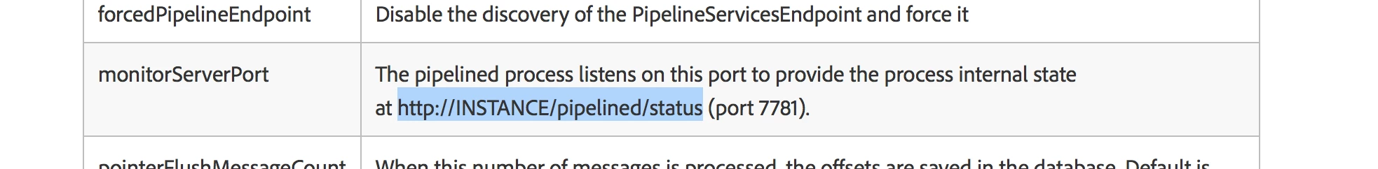 It talks about a "pipelined status page" (No triggers are retrieved > Step #4 Look for errors in the pipelined status page. trigger-discarted, trigger-failures should be zero.)