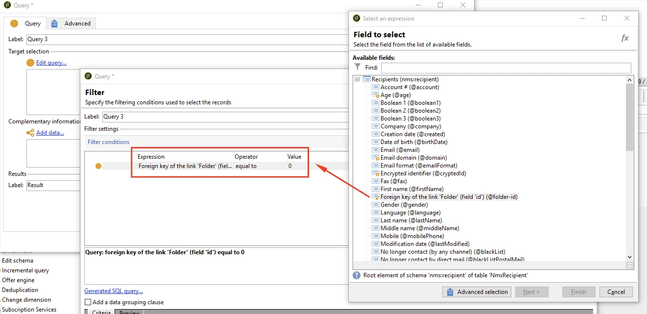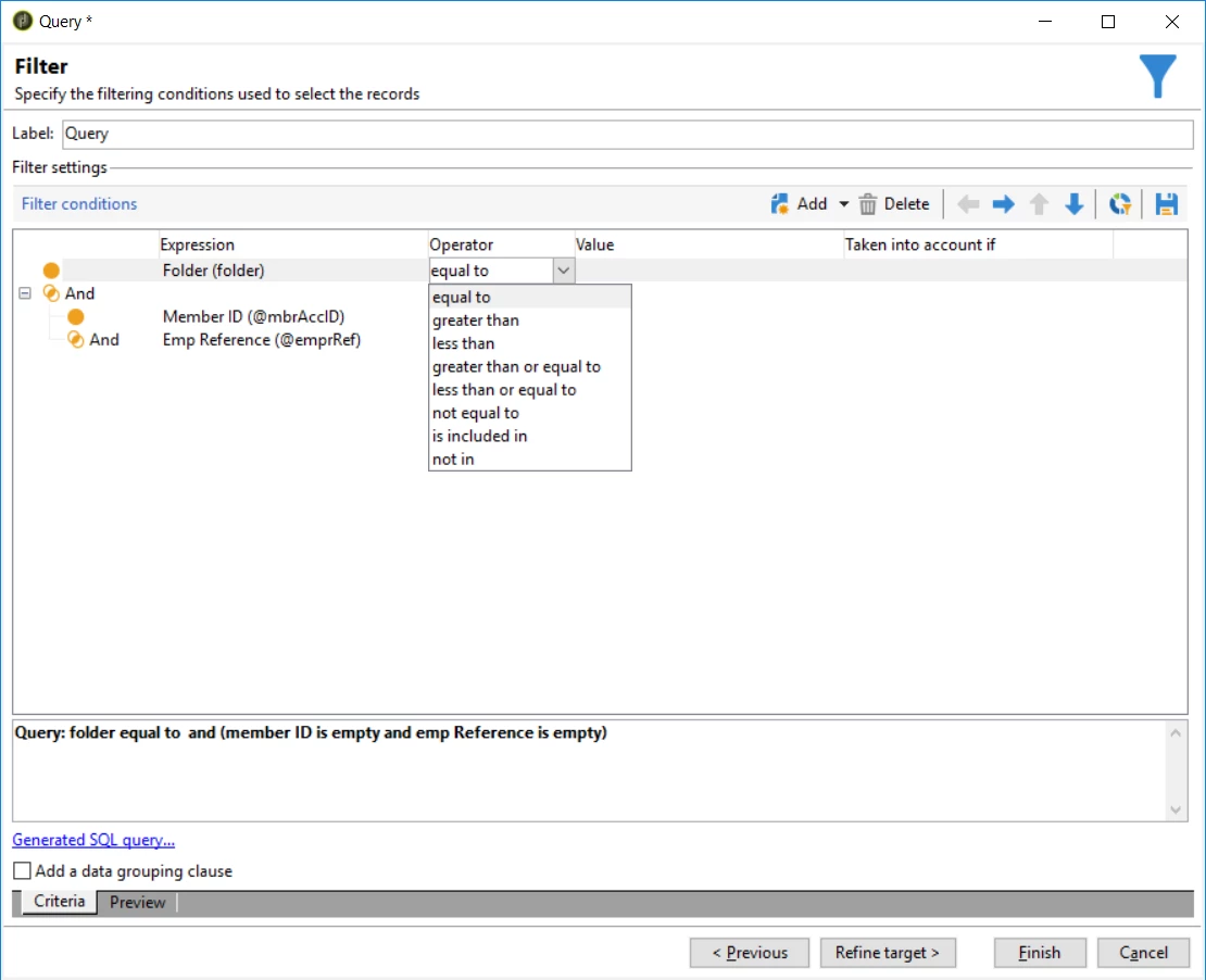 I can't seem to find a way to select 'folder does not exist' in the query menu?