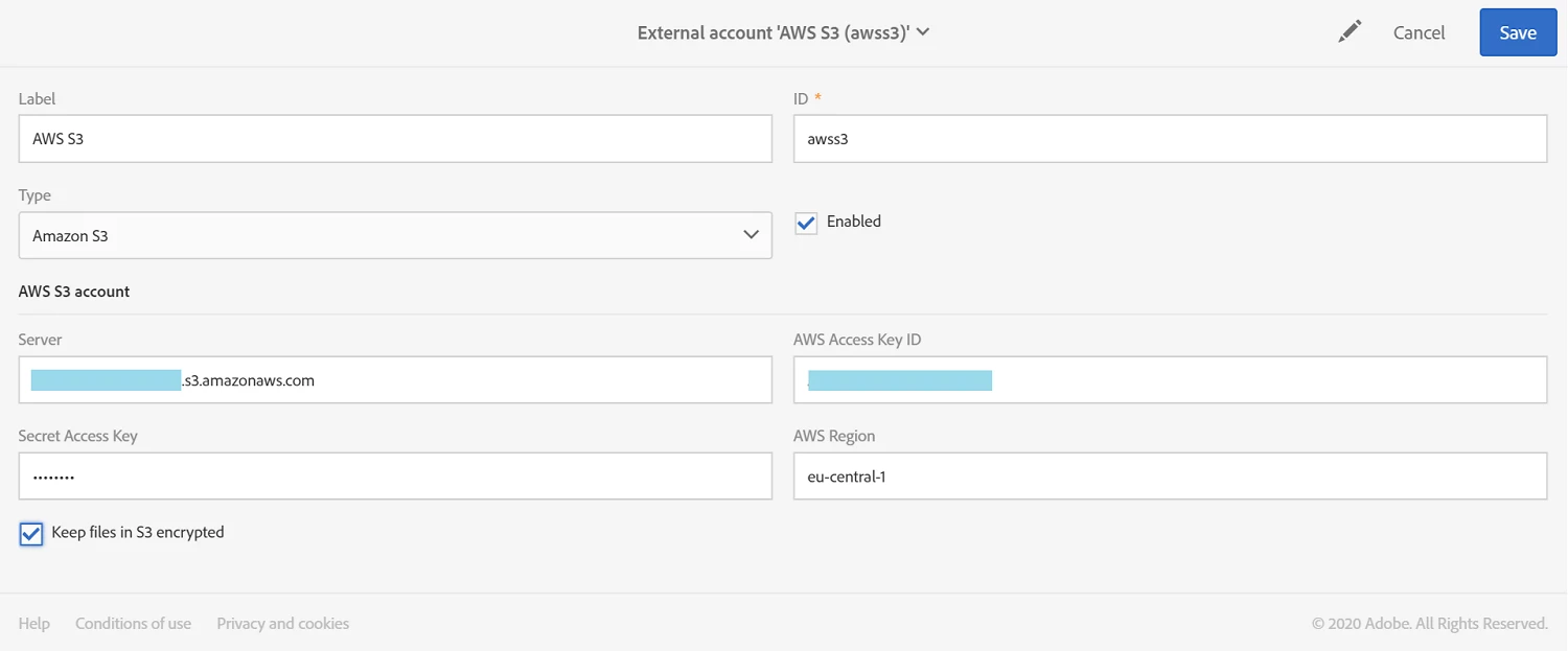 I have some issues with the configuration of an external account with Amazon S3.