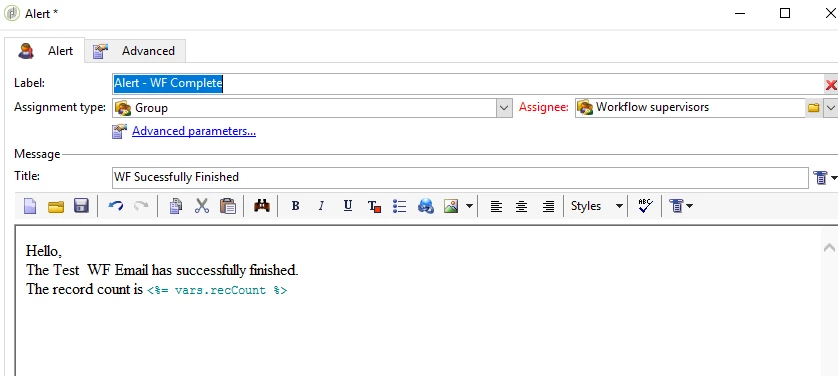 Currrently, there is an option to notify supervisor for error management in the edit properties but I would like to to send notification to user about workflow run completion with count details.