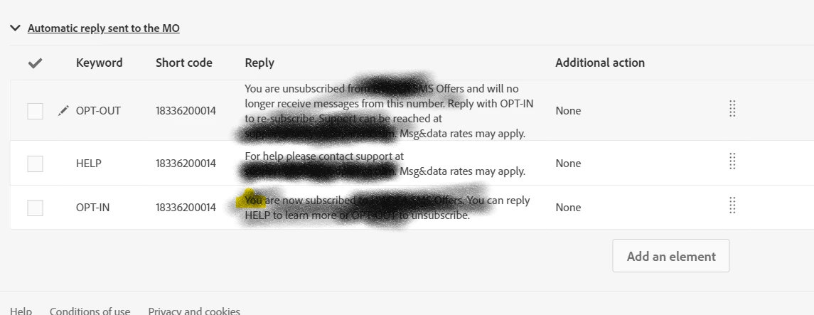 Auto replies are working for keywords like STOP/START & SUBSCRIBE/UNSUBSCRIBE but not for OPT-IN/OPT-OUT.