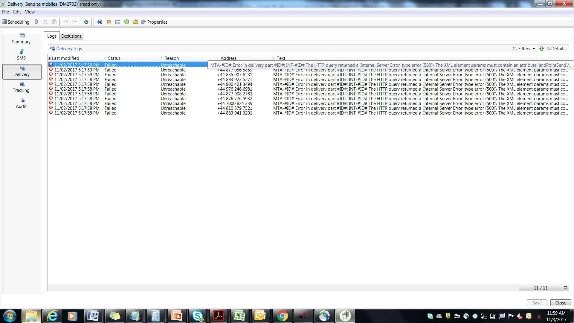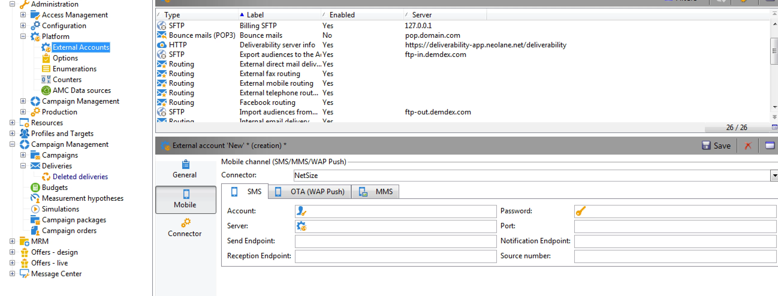 SMS Configuration in adobe campaign