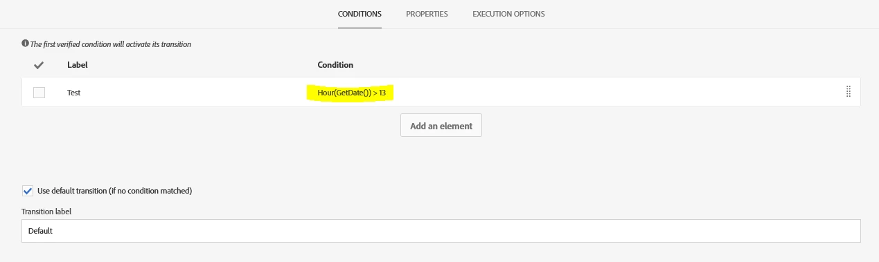 Test activity - time condition not working correctly