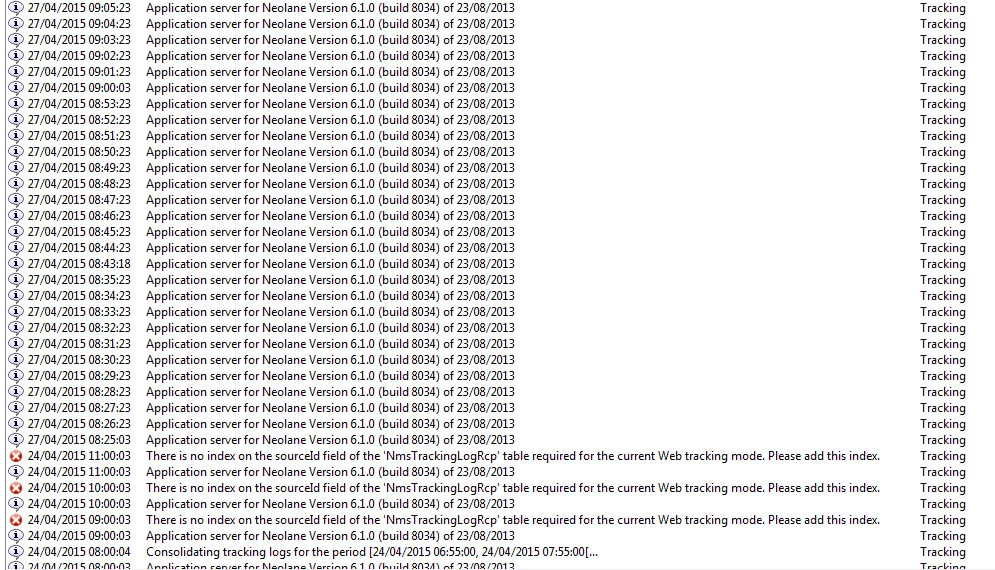 I was getting the error as "There is no index on the sourceId filed NmsTrackinglogRcp Table required for the current web tracking mode Please add index" because of which the workflow was stopped and the tracking logs are not generating.I tried to restart the workflow but it is always going in paused state and not giving any error. Is it because of the above error it is going in paused state?But in logs it is not showing any error