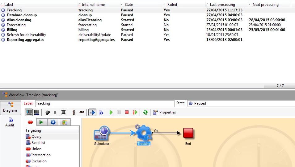 AppServer runs a workflow every hour (tracking) and commit them to the marketing database.