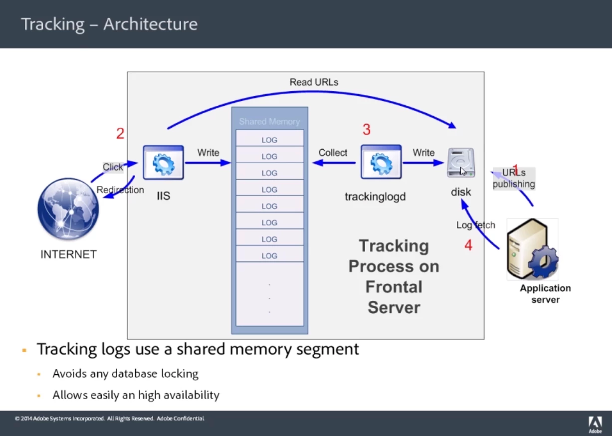 5. Writes tracking logs to the shared memory of the frontal server