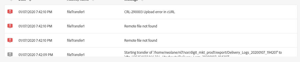 We are trying to transfer(upload) file in SFTP through transfer activity, but we are unable to connect the path.