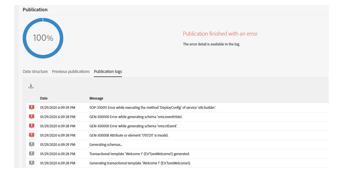 We used an update process to change ID values of event configurations. This was done to avoid deleting and recreating them. We changed the value from EVT<various text values> to something like '1707211'. That process worked, but after that we are no longer able to publish, we get an error of attribute or element 1707211 is invalid. When looking at schemas, I see ext:rtEvent _<Values we changed things to> all still exist even after deleting all event configurations and starting over. This includes the original values, the updated values and the values from the events we recreated. We still can't publish anything, custom resources included. Has anyone encountered this before? How can we delete the ext schemas that seem to be causing this issue?