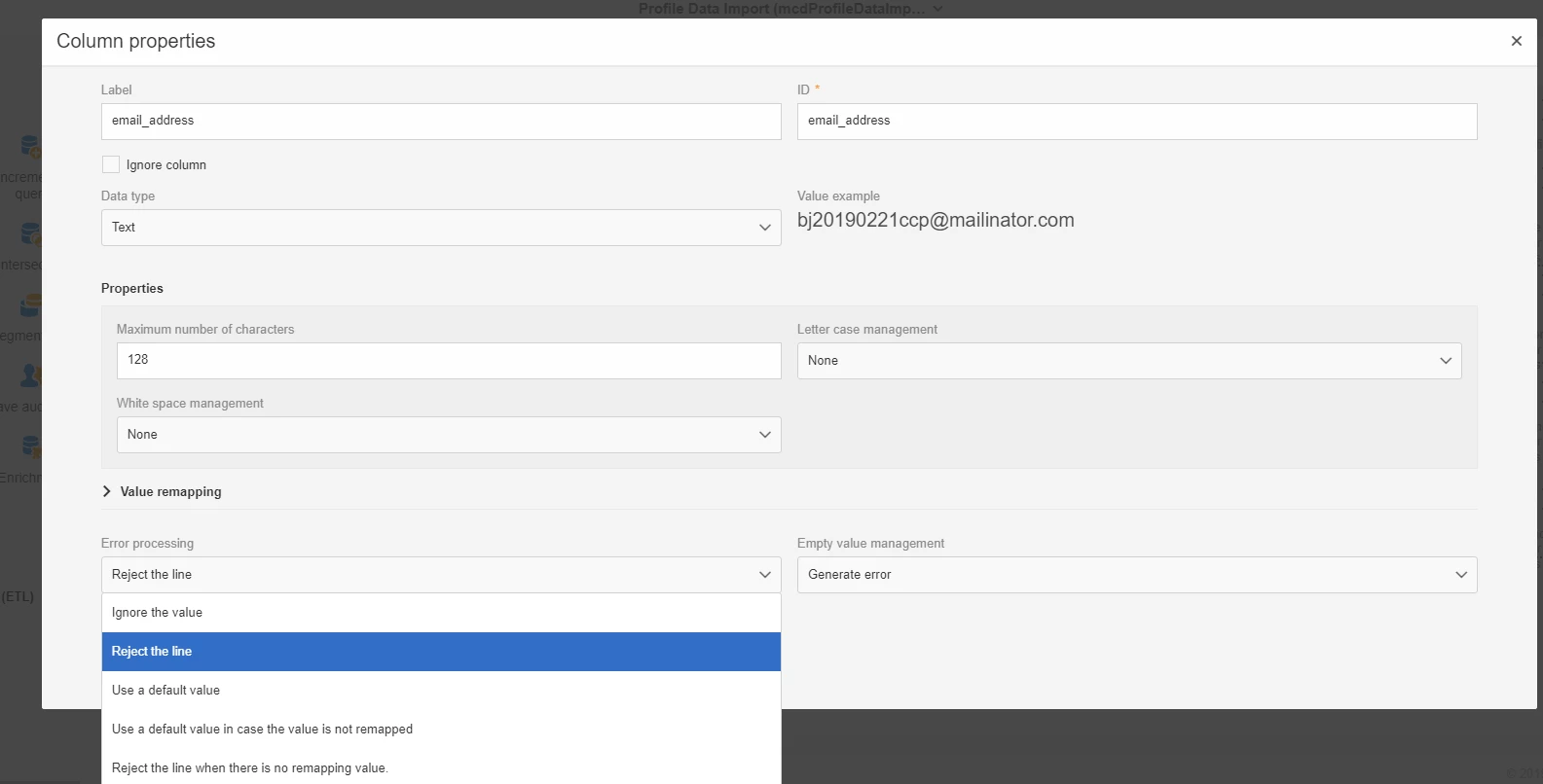 2. Empty value management: Generate Error