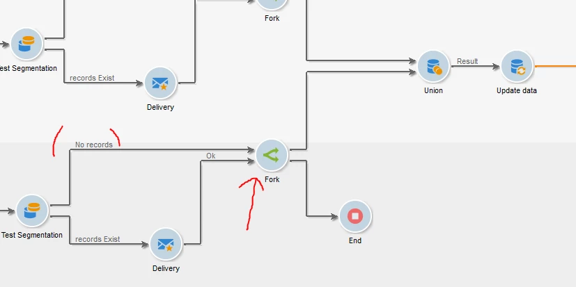 The issue here is that, if Union activity doesn't receive records from all inbound transitions it won't execute (it's like it keeps waiting for records from the empty inbound transition). And in my case, there're many times where I don't send specific emails (SMA_TEST3) and I want to use the Union for the others which sent emails (SMA_TEST1 and SMA_TEST2)