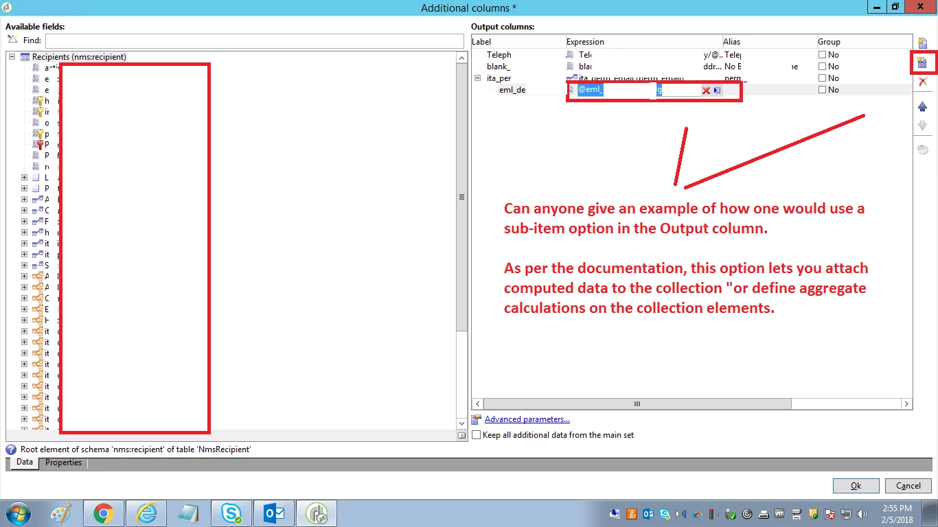 Can anyone give an example of how one would use a sub-item inside the Add data/edit additional data option the query activity?