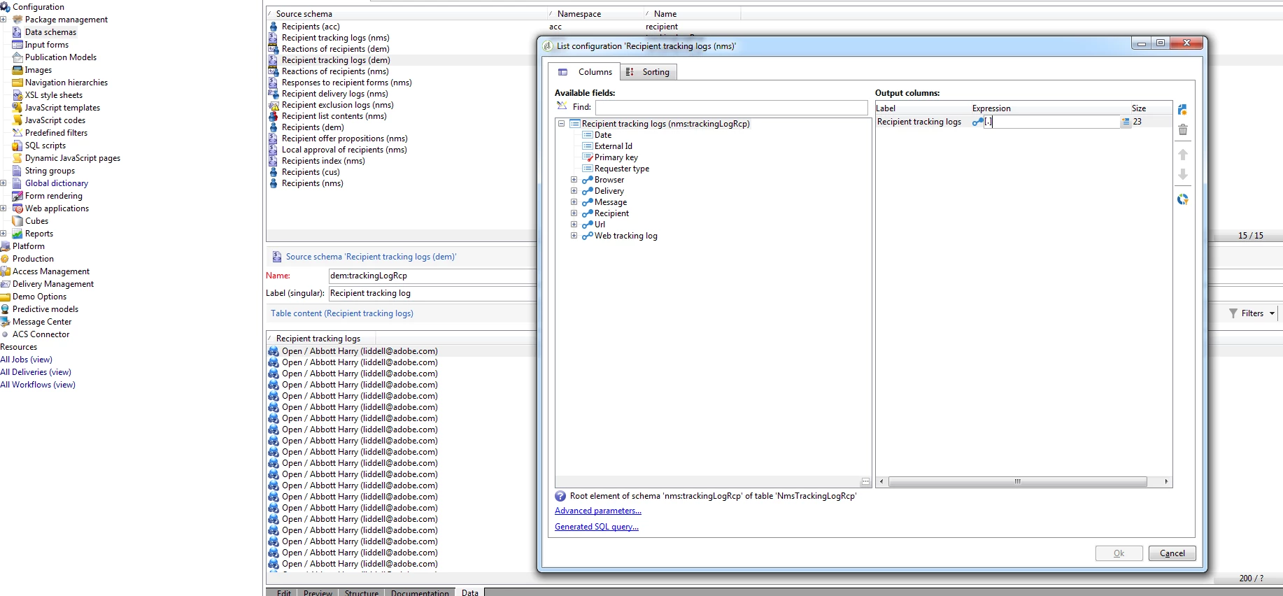 Explorer-> Administration -> Configuration -> Data schemas -> Recipient tracking los (nms)