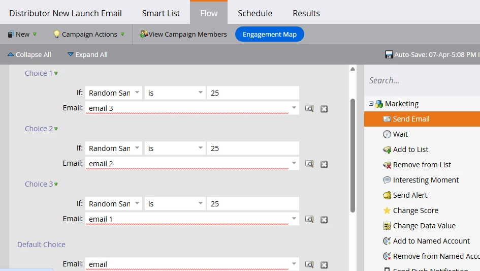 AB testing for batch and blast emails in a smart campaign