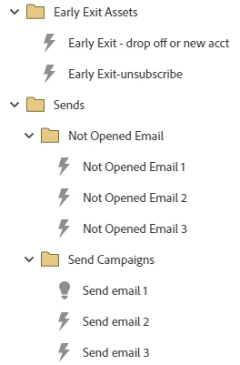 The Early Exit campaigns are to remove people that accept whatever offer it is that we are promoting. This is the smart list and flow of those: