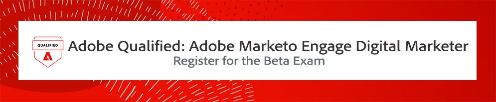 A credential for Marketo Engage is coming to the ADLS Adobe Qualified Credential program, and we're excited to give you the opportunity to experience the beta period. Participate in the beta launch of the Adobe Qualified: Adobe Marketo Engage Digital Marketer exam with the chance to earn a credential, get a ready-for-sharing virtual badge, and provide feedback!