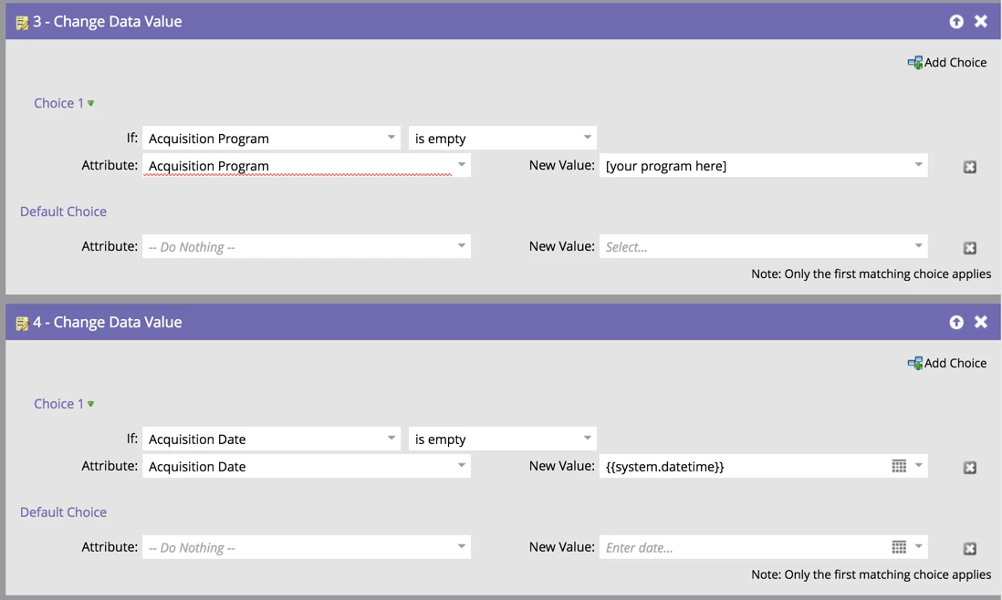 Acquisition Program Name and Date Not Automatically Set