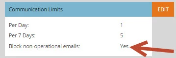 In admin I have set up communication limits. 2 emails per day, 5 emails per week.