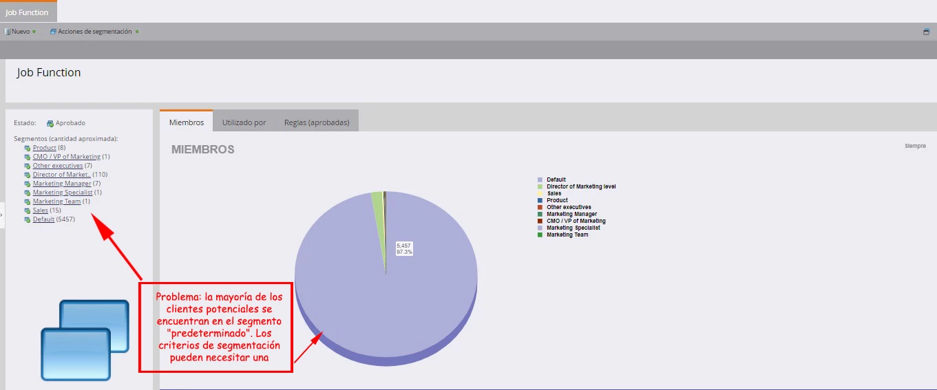 Tiene una segmentación aprobada que se usa en los pasos del flujo de Marketo, pero tiene “segmentos” que no tienen ningún “miembro”.