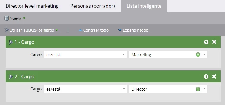 Por ejemplo, supongamos que tiene un segmento para “Directores de marketing” con criterios como: