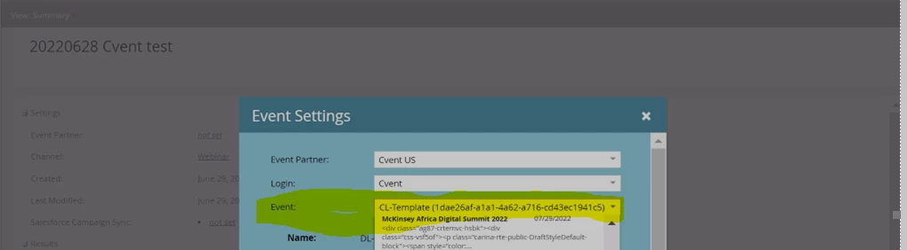 Add Capability to 'Search' for events/webinars in the "Event" dropdown
