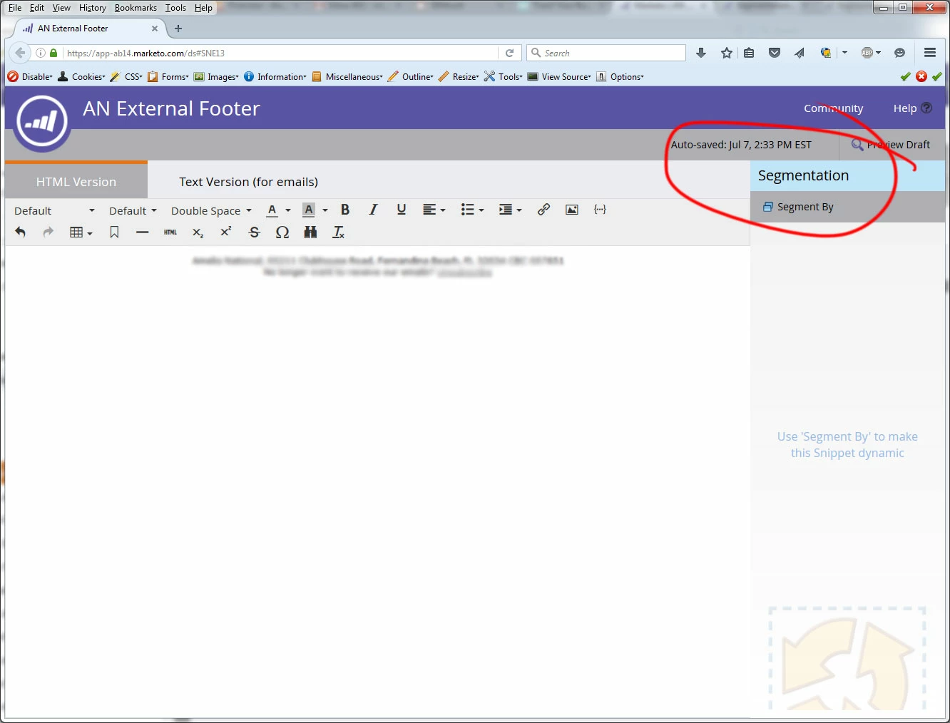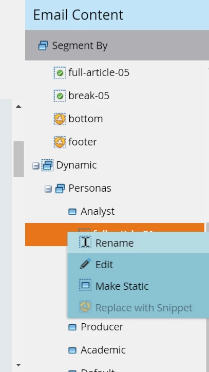 Add Snippets to Segments in an Email