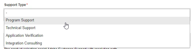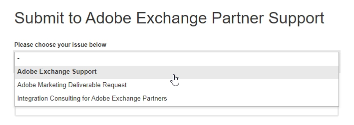 3. Please choose your issue below dropdown choose “Adobe Exchange Support”