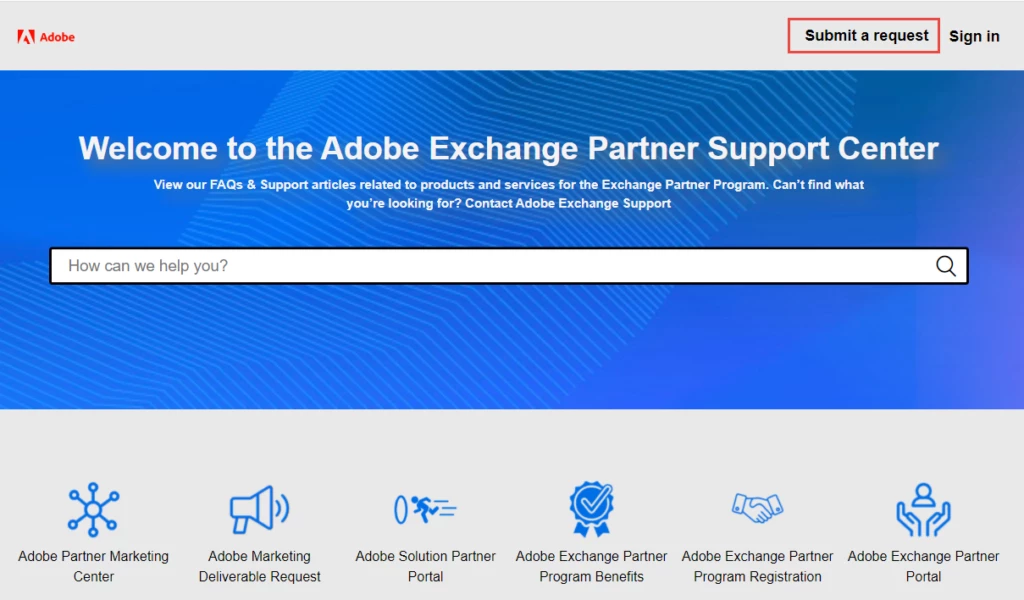 1. Go to Adobe Exchange Partner Support Center
