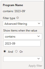 Advanced BI Analytics - filters