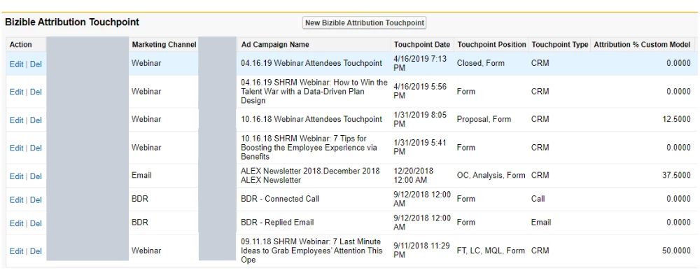 By using this activity functionality that is within Bizible to create touchpoints, Sales becomes a part of the larger attribution picture.