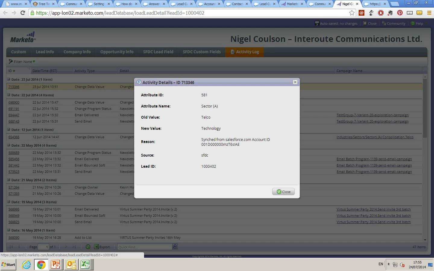 I am trying to change the Sector data value for a long list of leads on MArketo (which are also on SFDC). After having changed many of these, i realised that the Sector of the ones in SFDC changes back to the original, via SFDC synch. Meaning that all my work was basically lost. I am not sure why that happens, but the following are the messages i got on the Activity log of an example lead: