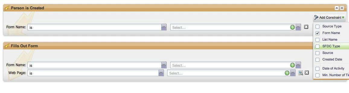 Allow Web Page as an Additional Constraint on "Person is Created" Trigger