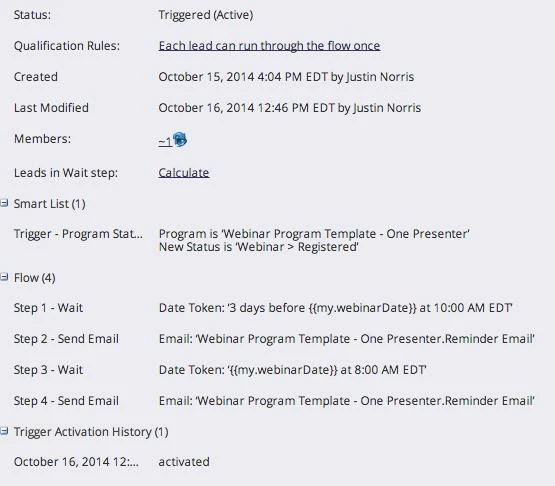 It triggers when someone is registered, then uses the webinar date token to dynamically wait until specific points to send reminder emails. That's good!