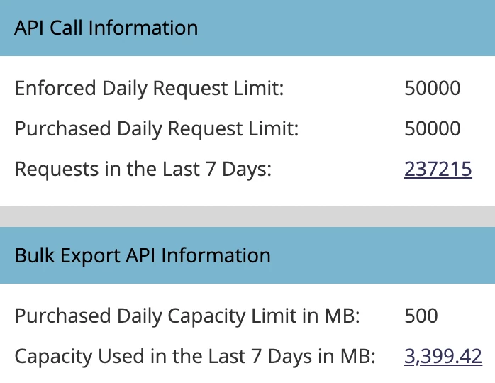 Based on what these numbers show you will see whether you have more REST API or Bulk Extract capacity or if you are already very close to your limits with both then you might have to contact Marketo support to get an increase in capacity or reduce the number of calls
