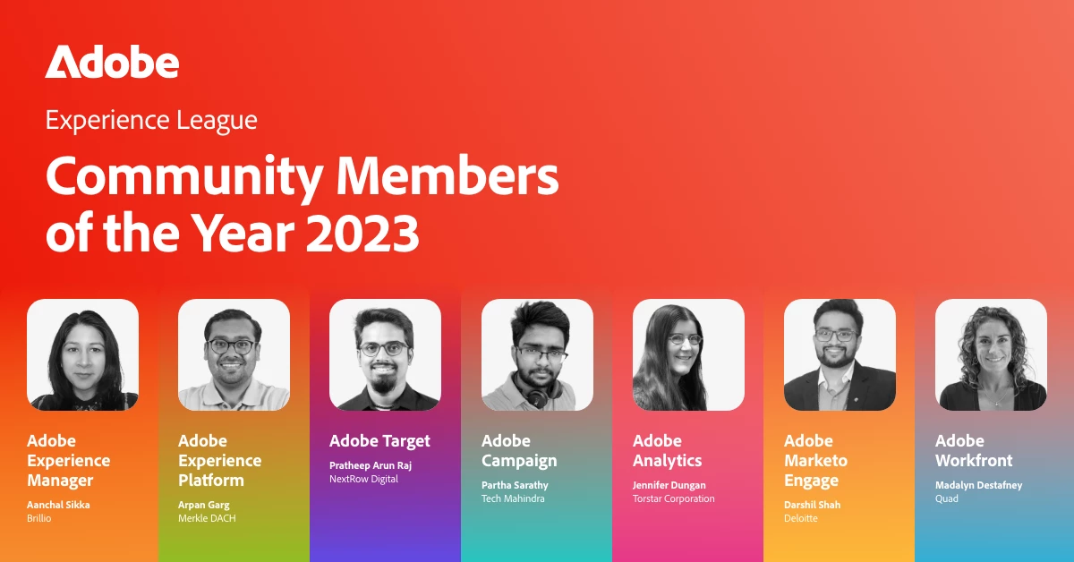 We are pleased to present the distinguished recipients of the Adobe Experience Cloud Community Members of the Year for 2023.