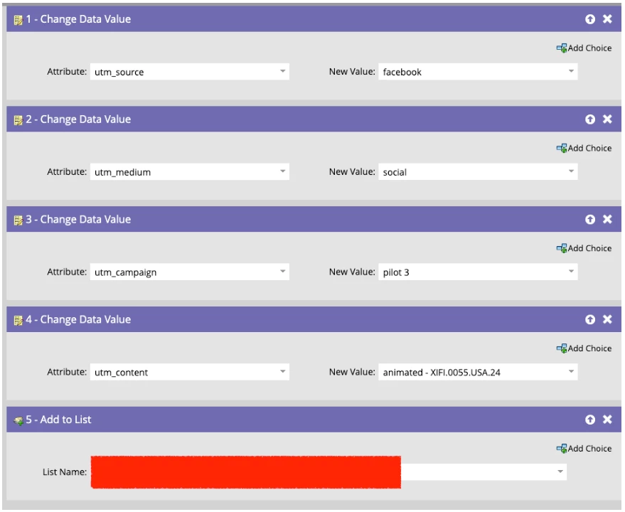 - Flow: Change Data Value to parse values into specific UTM fields