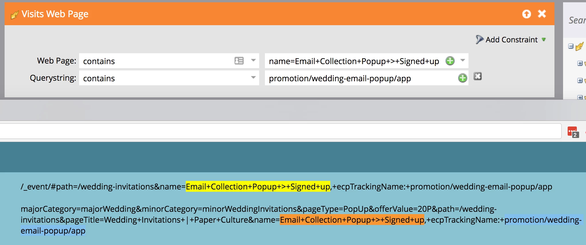 Sometimes, our campaign simply fails to fire. However, the behavior is very consistent for a given URL. When we go back to the activity log and check what was logged, we can verify that the web page visit that was logged, matches the trigger params. What's baffling is that this seems to break depending on the stuff that we don't care about in the URL, such as the path.