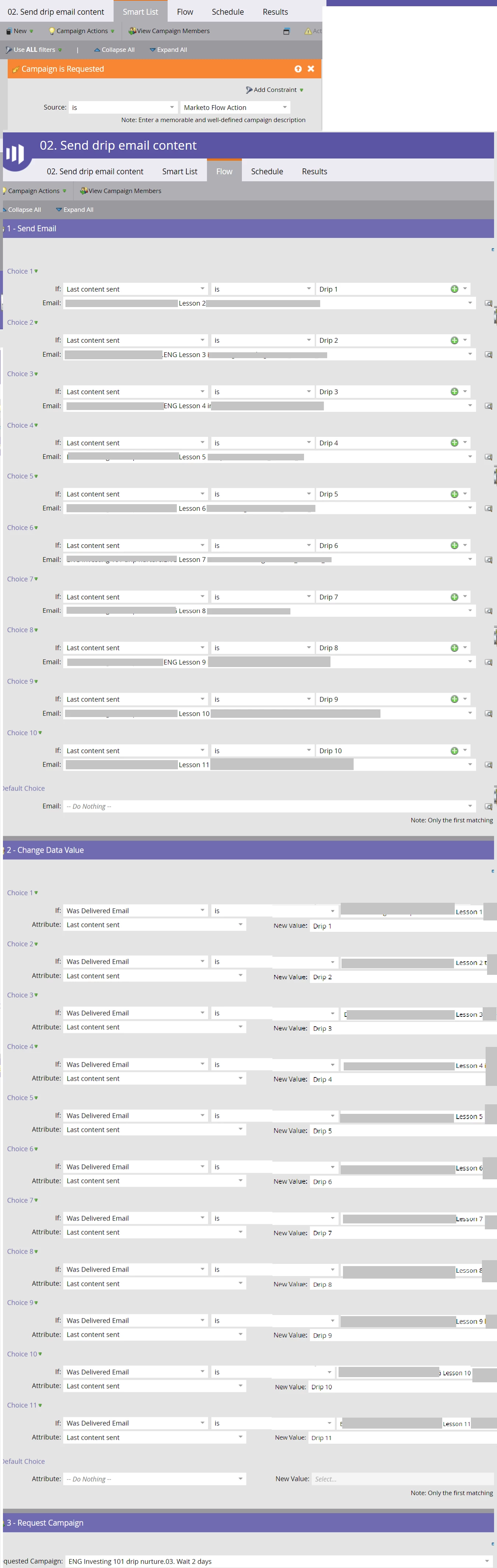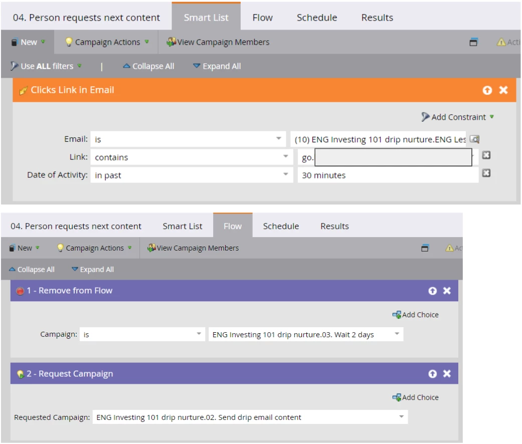 Assistance with Smart campaigns for drip campaign - send every 2 days or send immediately based on clicked specific link