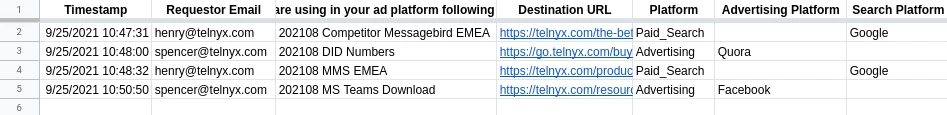 Every new submission to the UTM Request Form gets logged in the UTM Request Form Responses sheet, which in turn triggers the Zap to run in Zapier.