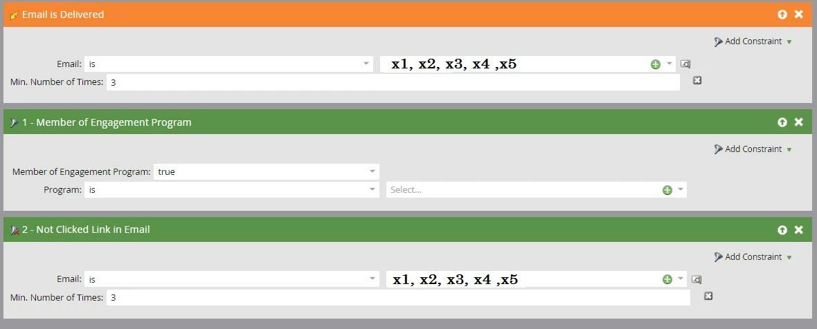 I have a nurture campaign set up with emails x1, x2, x3, x4 and x5.