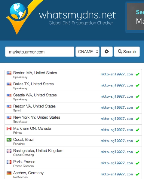 IT set-up the new CNAME in the DNS record and pointed our new CNAME marketo.armor.com to our tracking link mkto-sjl0027.com