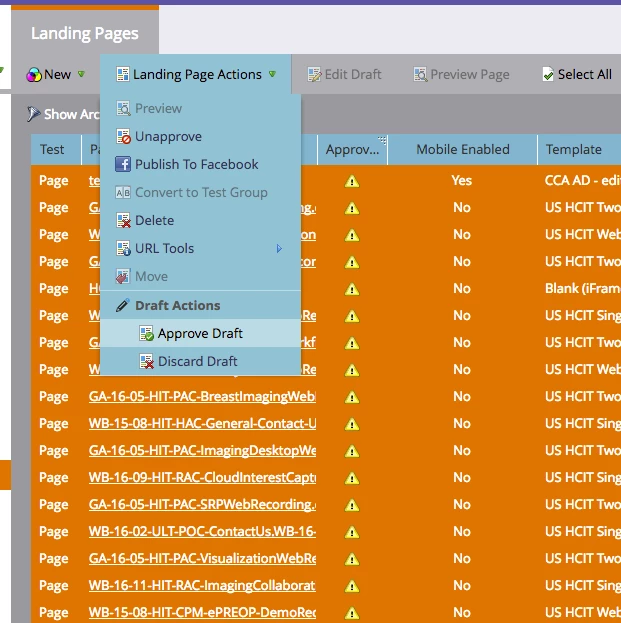 So, let's say you've made some changes to one of your more popular LP templates and now you have hundreds of landing pages in Draft mode. If you don't know how to bulk approve, this is a serious pain in the tuchas. Right? Wrong.