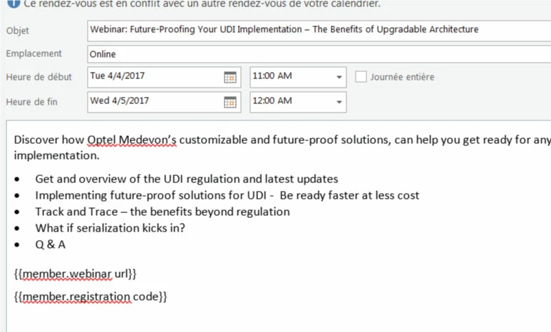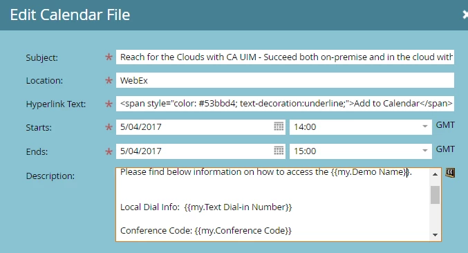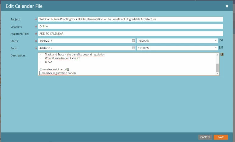 I'm trying to set this up, but it's not working. In my Webinar Program, I want to include the unique code and the registration code(GoToWebinar) for registered in my save the date Calendar file/token but the tokens are not showing as links in the ICS file when you download it in Outlook.