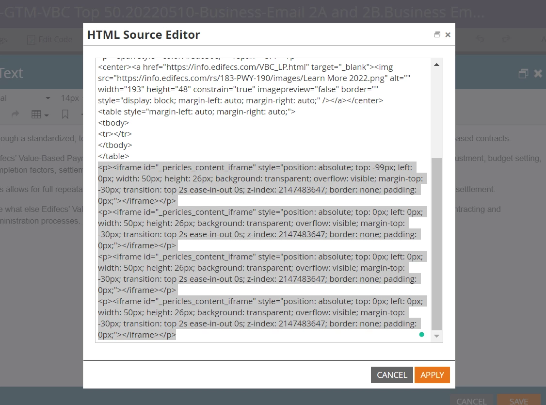 Whenever I go into the html editor it adds this block of code (I am not adding) that doesn't appear on the visual editor in Marketo but appears as spaces on sent sample.