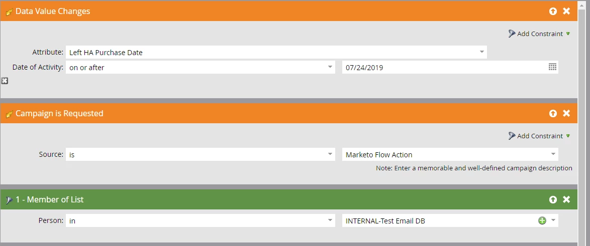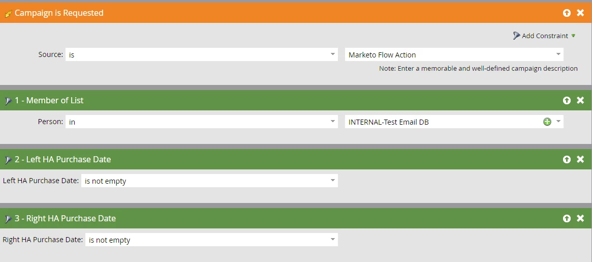 Also in Marketo, you don't need to reference the list itself. If you uploaded someone into a list, they're now just broadly in Marketo's contact database, so your member of list isn't necessary. Marketo is just going to look through all of it's uploaded contacts to see who meets your filter qualifications.