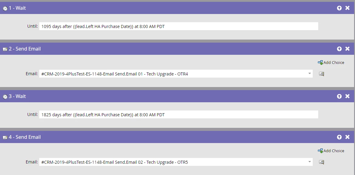 What you posted makes sense, I may just not fully understand how Marketo works and am making it more complicated than it needs to be. We sell hearing aids and about 4 years is the point where it's worth investing in new devices. We want to set up a campaign where we send an email out at the 3-year mark, then the 5-year mark. Right now our API isn't connected, so we upload a new database once a week until it will be.