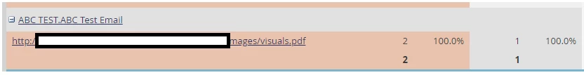 If you'd used this pdf in the email as a tracked link (CTA), then you can create a email link performance report with SL set to "Clicked Link in Email" Email is any, and Link contains <pdf url>. In the report you should see the email click link activities of the qualified people (i.e., all the email clicks of the people who'd have clicked the <pdf url>), in the report locate the pdf-url link. Under the pdf-url link you should also see the Email asset name in the Marketo Program Name.Email asset name format (like ABC Test.ABC Test Email in the below snapshot), you should be able to get the Marketo program name with email asset that has the pdf url in it from here.
