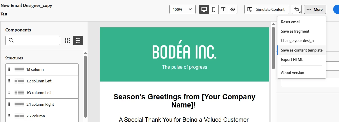 Can I save an email created in the new designer as an email template?