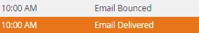 The activity log of about a dozen of people in a program has a "Delivered" and "Bounced" stamp, reported at same time